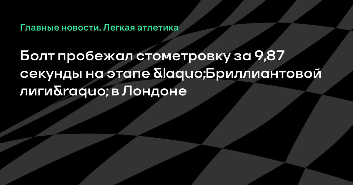 Ямайский спринтер Усэйн Болт победил c результатом 9,87 секунды в финальном забеге на 100 м на этапе «Бриллиантовой лиги» в Лондоне.