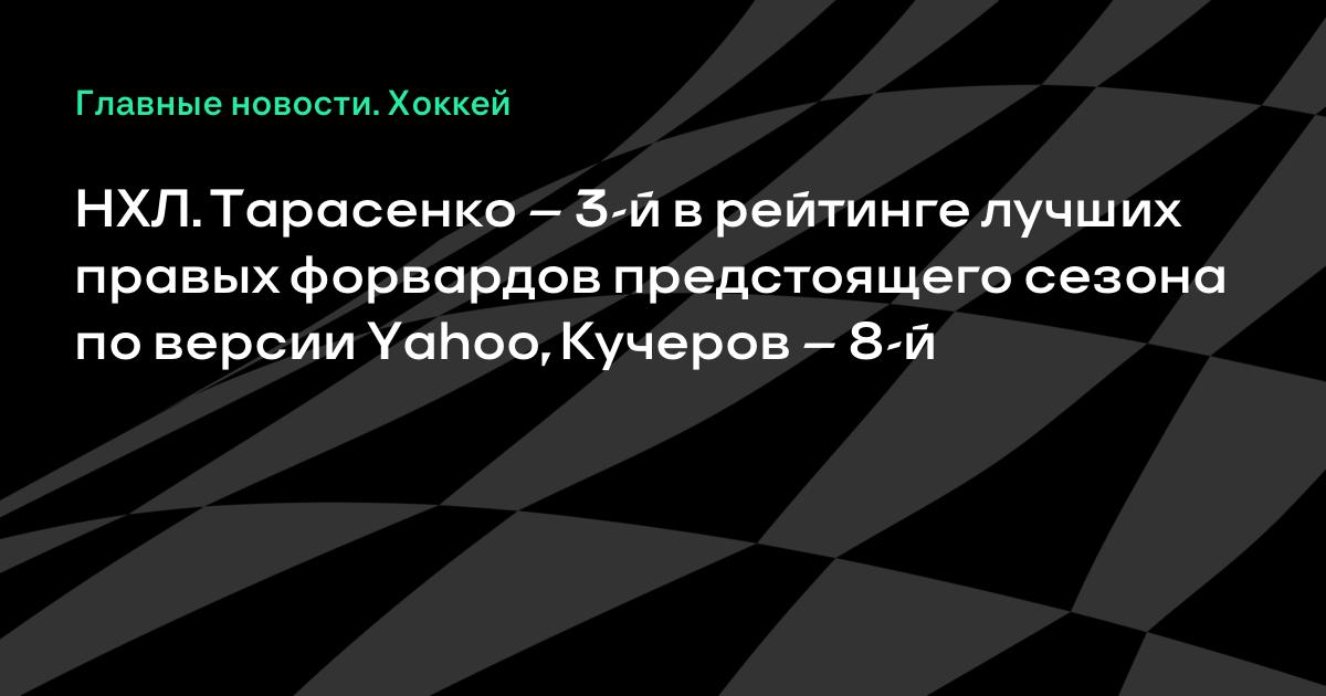 НХЛ. Тарасенко – 3-й в рейтинге лучших правых форвардов предстоящего сезона по версии Yahoo, Кучеров – 8-й