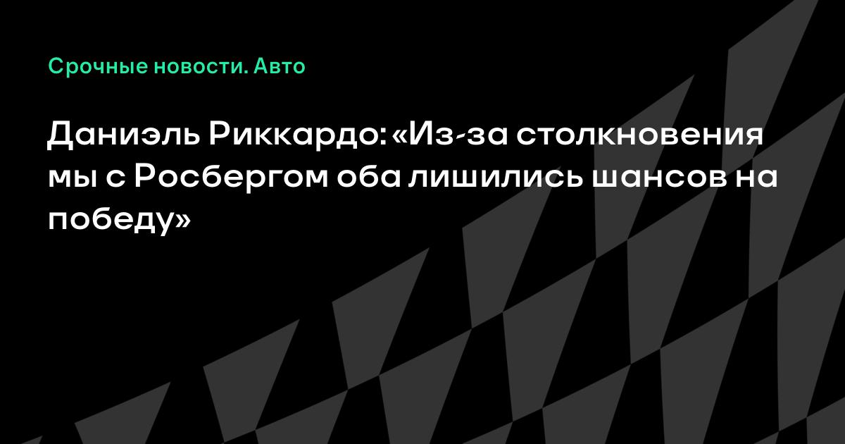 Полагаю, что из-за столкновения мы с Росбергом оба лишились шансов на победу. Но, опять же, я не жалею о предпринятой попытке обгона. Это был мой единственный шанс одержать победу. Я думал, что смогу провести чистый обгон, в то время как Нико, как я полагаю, думал, что ему хватит места на выходе из поворота. В итоге случилось то что случилось», – цитирует Риккардо motorsport.