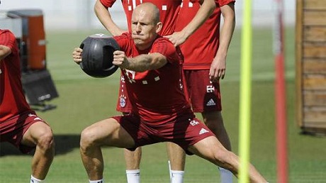 Полузащитник «Баварии» Арьен Роббен принял участие в тренировке команды, которая начала подготовку к матчу за Суперкубок Германии с «Вольфсбургом».