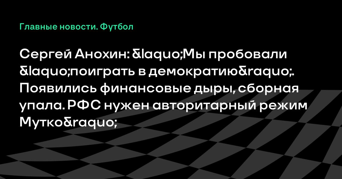 Сергей Анохин: «Мы пробовали «поиграть в демократию». Появились финансовые дыры, сборная упала. РФС нужен авторитарный режим Мутко»