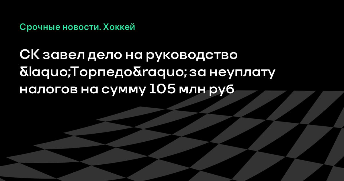 «По версии следствия, руководство клуба НП ХК «Торпедо» нарушило требования налогового законодательства, выразившиеся в удержании и неперечислении в бюджет Нижегородской области налога на доходы физических лиц в сумме превышающей 105,5 миллионов рублей за период 2014 года», – говорится в заявление следственного управления СКР по Нижегородской области.