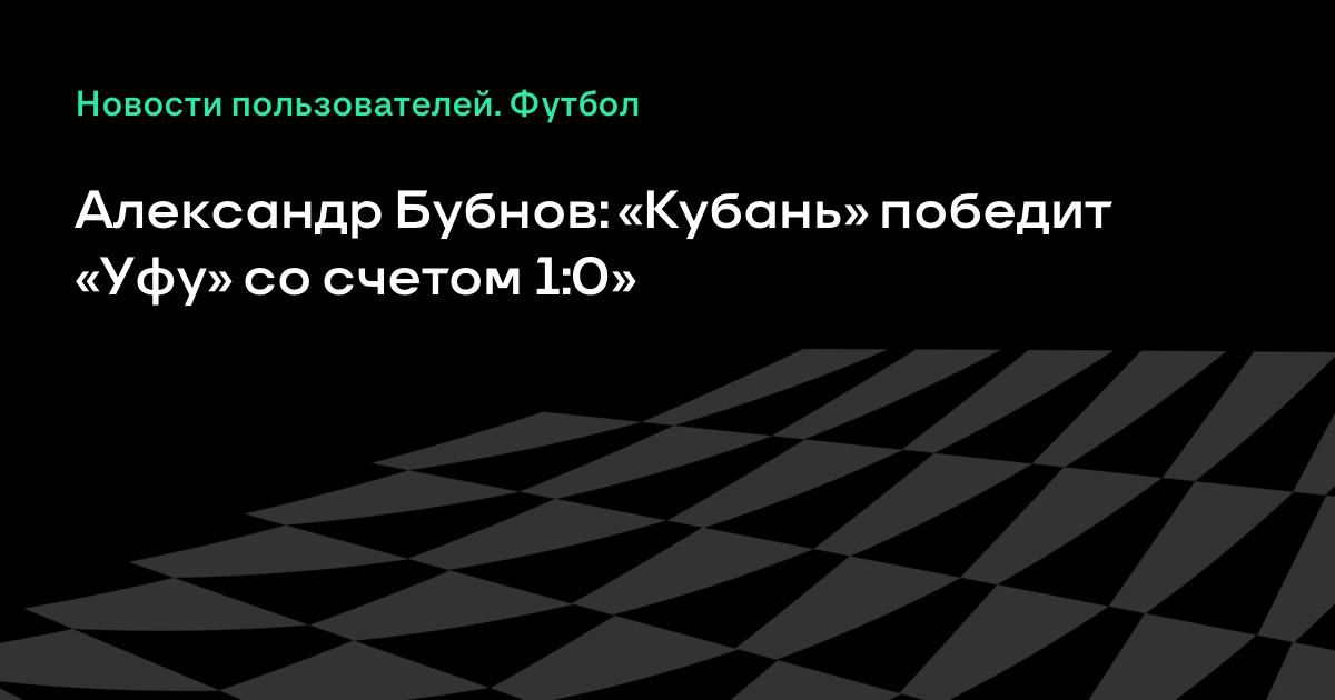 - «Кубани», обладающей неплохим подбором исполнителей, пора уже начать набирать очки. На своем поле в игре с не самым сильным соперником у хозяев есть неплохой шанс на первую победу. Прогноз — 1:0, — приводит слова Бубнова портал Sportbox.ru.