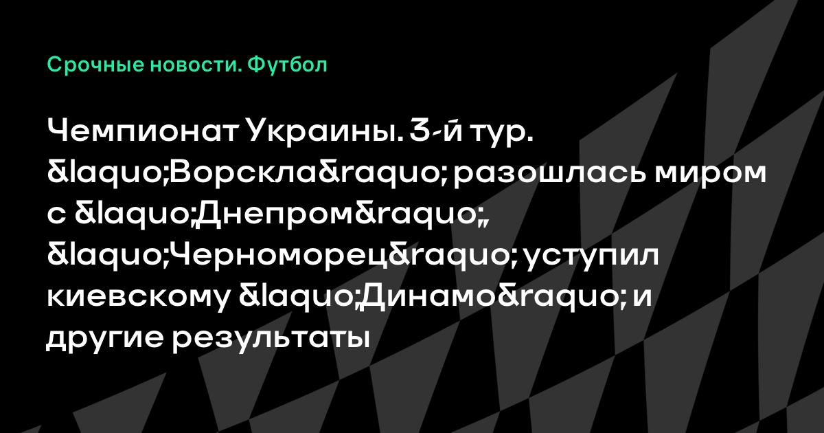 Чемпионат Украины. 3-й тур. «Ворскла» разошлась миром с «Днепром», «Черноморец» уступил киевскому «Динамо» и другие результаты