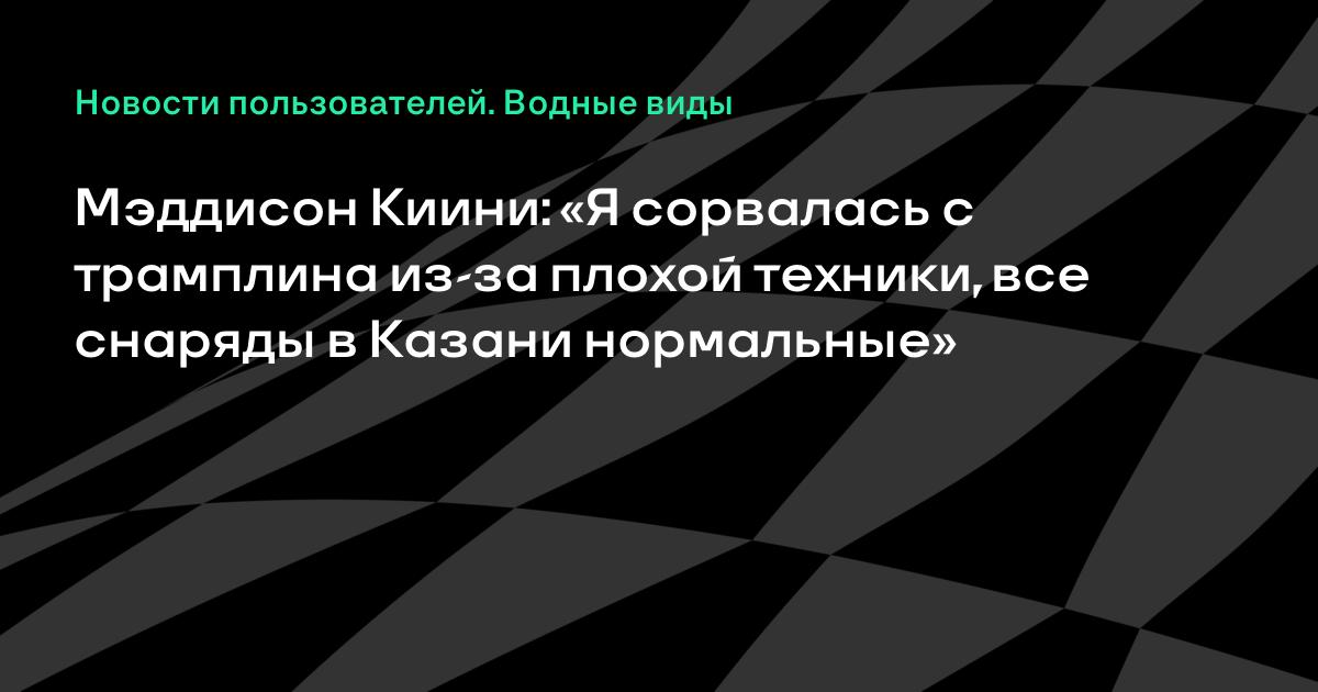 Австралийская прыгунья Меддисон Киини, занявшая седьмое место на трёхметровом трамплине на чемпионате мира по водным видам спорта в Казани, в беседе с корреспондентом «БИЗНЕС Online» рассказала о своём неудачном прыжке на метровом трамплине, а также новой неудачной попытке в завершившихся соревнованиях.