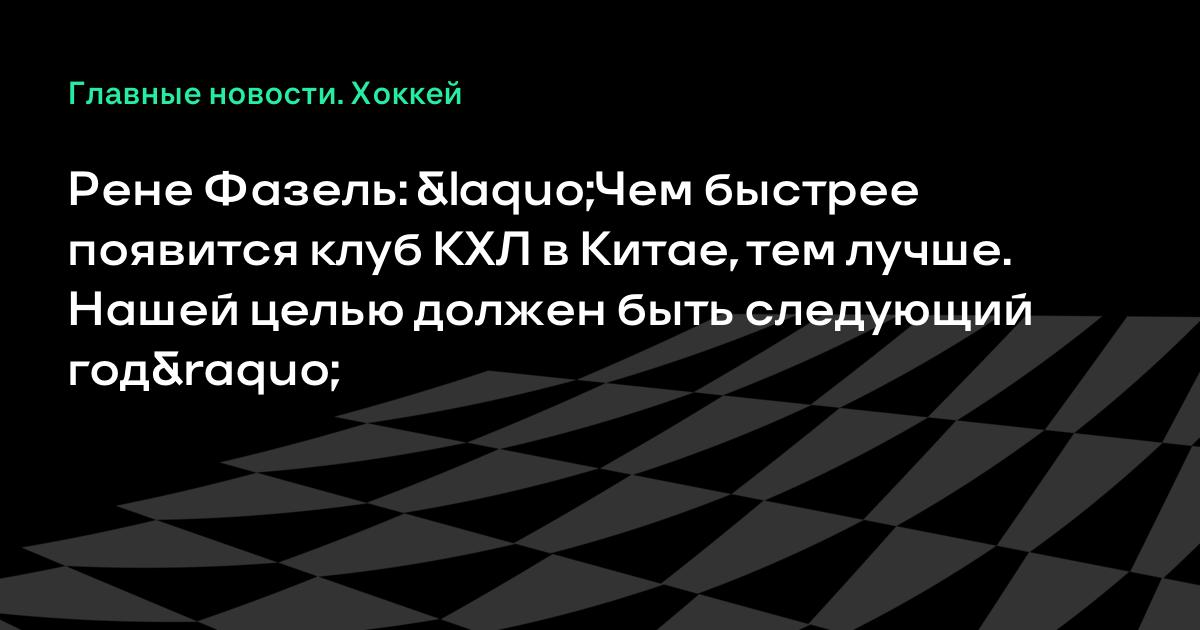 Рене Фазель: «Чем быстрее появится клуб КХЛ в Китае, тем лучше. Нашей целью должен быть следующий год»