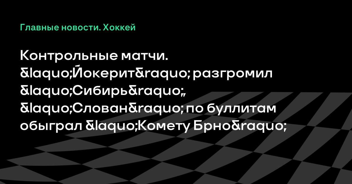 Контрольные матчи. «Йокерит» разгромил «Сибирь», «Слован» по буллитам обыграл «Комету Брно»