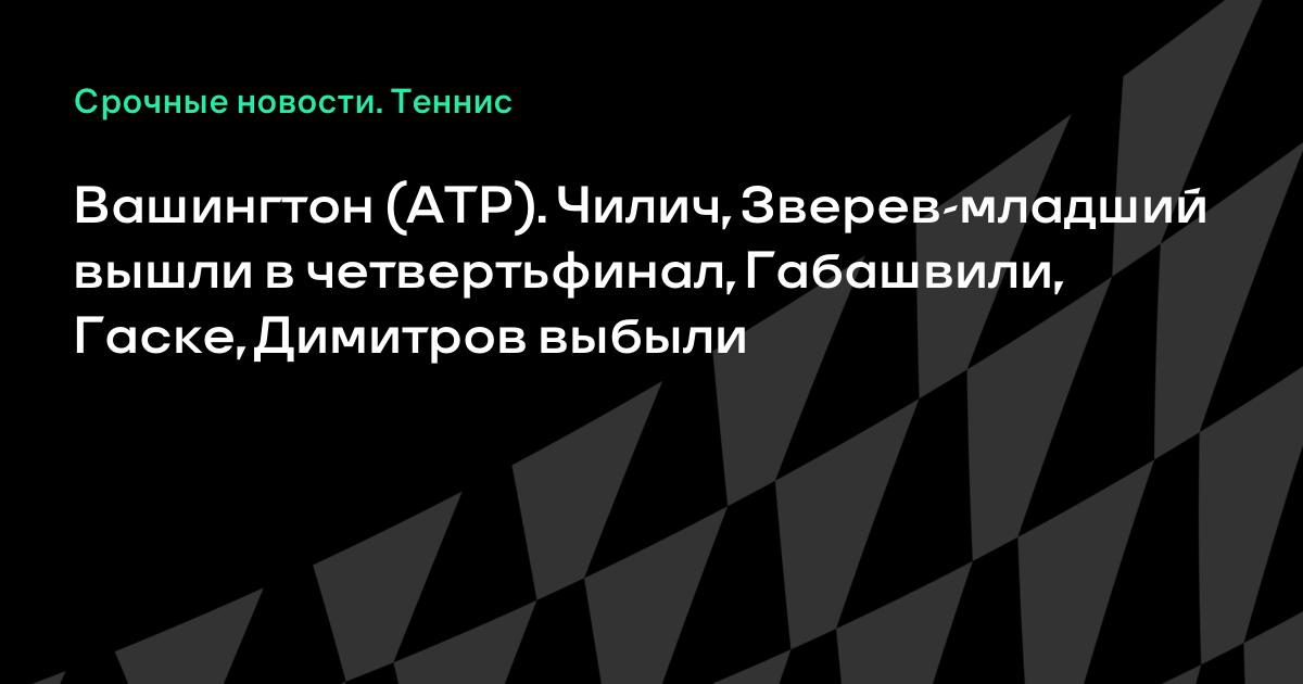 Вашингтон (АТР). Чилич, Зверев-младший вышли в четвертьфинал, Габашвили, Гаске, Димитров выбыли