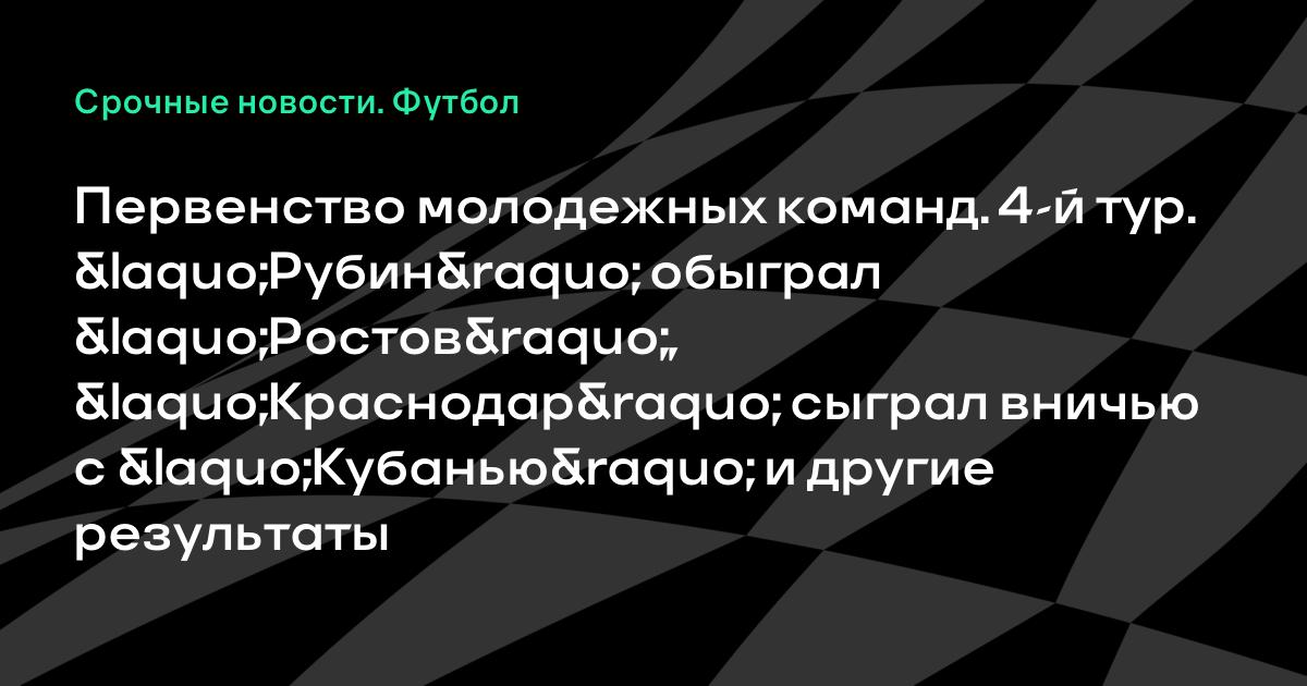 Первенство молодежных команд. 4-й тур. «Рубин» обыграл «Ростов», «Краснодар» сыграл вничью с «Кубанью» и другие результаты