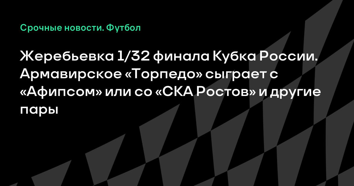 Жеребьевка 1/32 финала Кубка России. Армавирское «Торпедо» сыграет с «Афипсом» или со «СКА Ростов» и другие пары