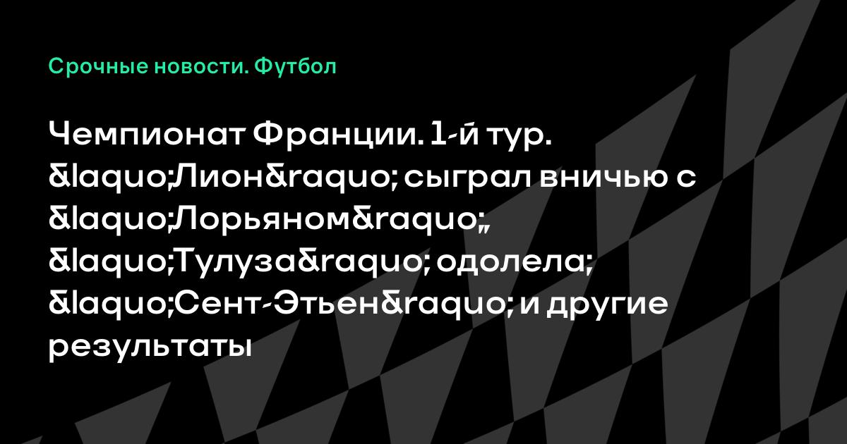 Чемпионат Франции. 1-й тур. «Лион» сыграл вничью с «Лорьяном», «Тулуза» одолела; «Сент-Этьен» и другие результаты