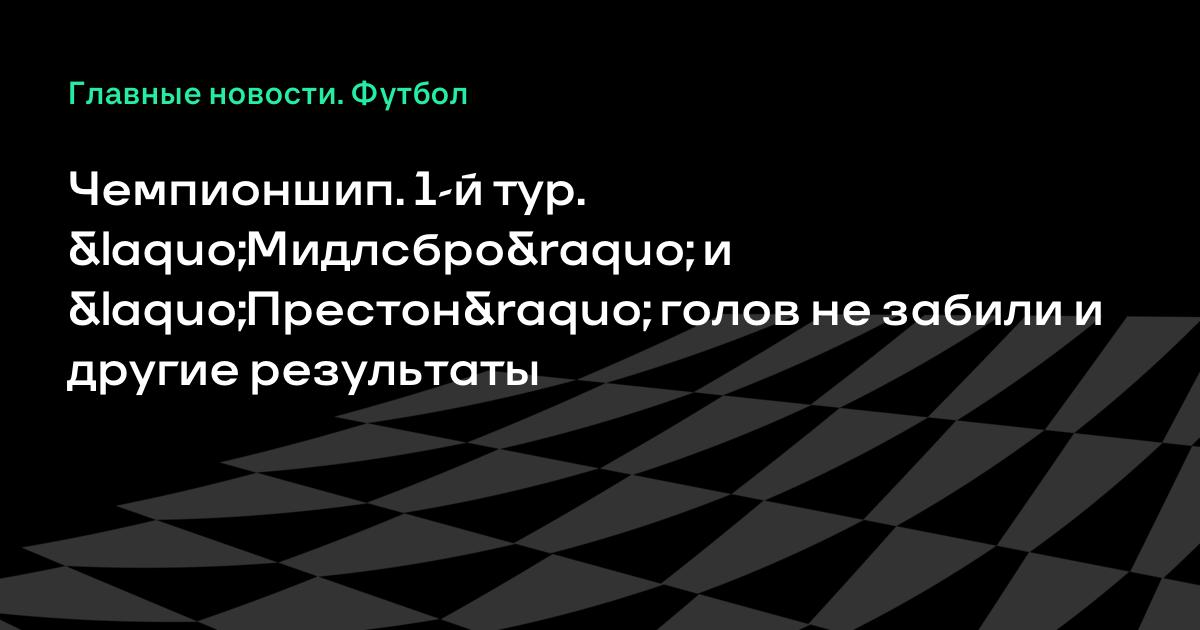Чемпионшип. 1-й тур. «Мидлсбро» и «Престон» голов не забили и другие результаты