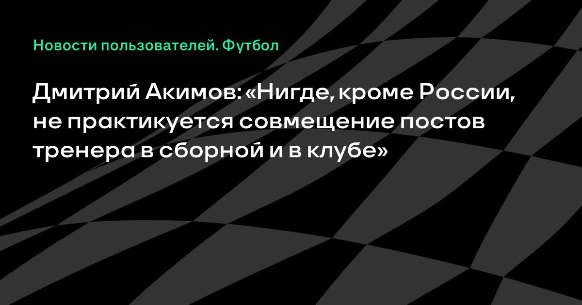 Дмитрий Акимов: «Нигде, кроме России, не практикуется совмещение постов тренера в сборной и в клубе»