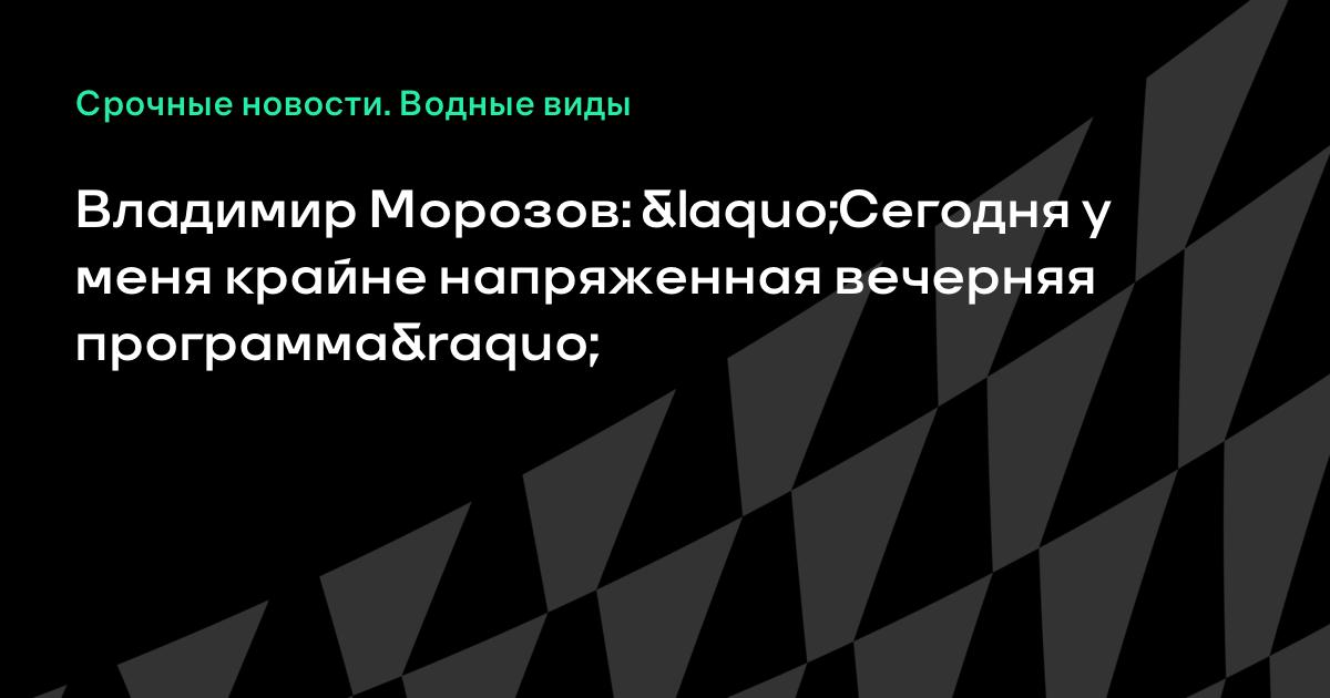 Владимир Морозов: «Сегодня у меня крайне напряженная вечерняя программа»