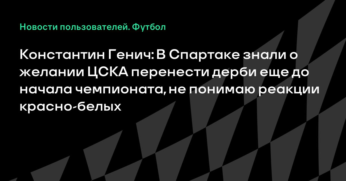 Константин Генич: В Спартаке знали о желании ЦСКА перенести дерби еще до начала чемпионата, не понимаю реакции красно-белых