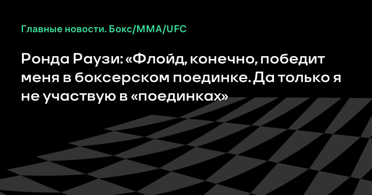 Ронда Раузи: «Флойд, конечно, победит меня в боксерском поединке. Да только я не участвую в «поединках»
