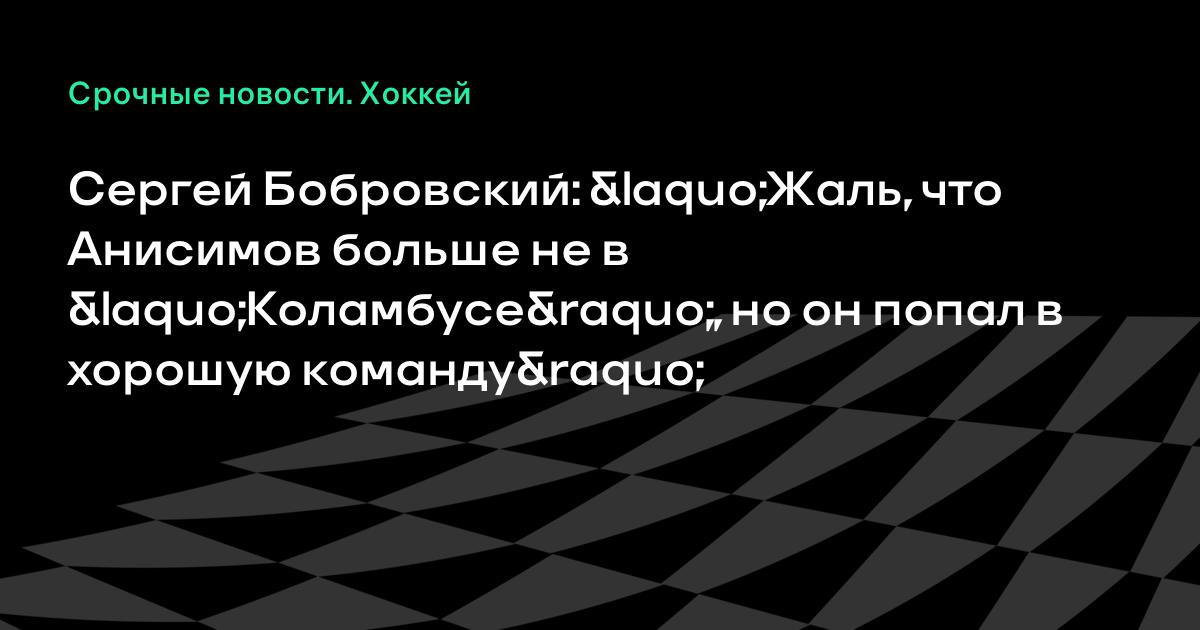 Сергей Бобровский: «Жаль, что Анисимов больше не в «Коламбусе», но он попал в хорошую команду»