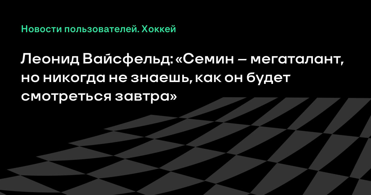Леонид Вайсфельд: «Семин – мегаталант, но никогда не знаешь, как он будет смотреться завтра»