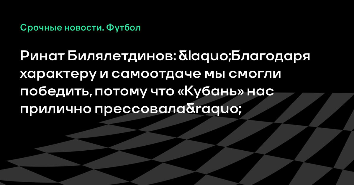 – Не могу сказать, не мне судить о «Кубани». Могу сказать, что попытки острых разрезающих передач у соперника были очень хороши. Это современный стиль. Пока был свеж Игнатьев, Набиуллин по большому счету с ним не справлялся. Хорошо, что Игнатьева заменили, потому что мы все «поднаелись», — сказал Билялетдинов в эфире телеканала «НТВ-Плюс Наш Футбол».