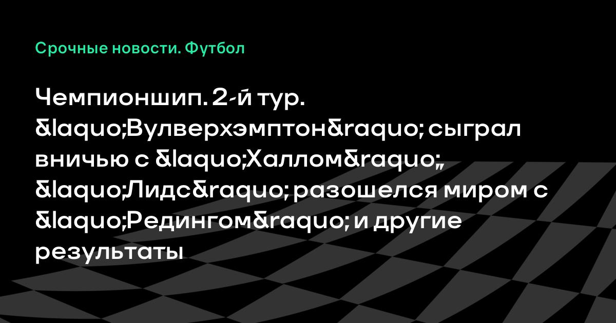 Чемпионшип. 2-й тур. «Вулверхэмптон» сыграл вничью с «Халлом», «Лидс» разошелся миром с «Редингом» и другие результаты