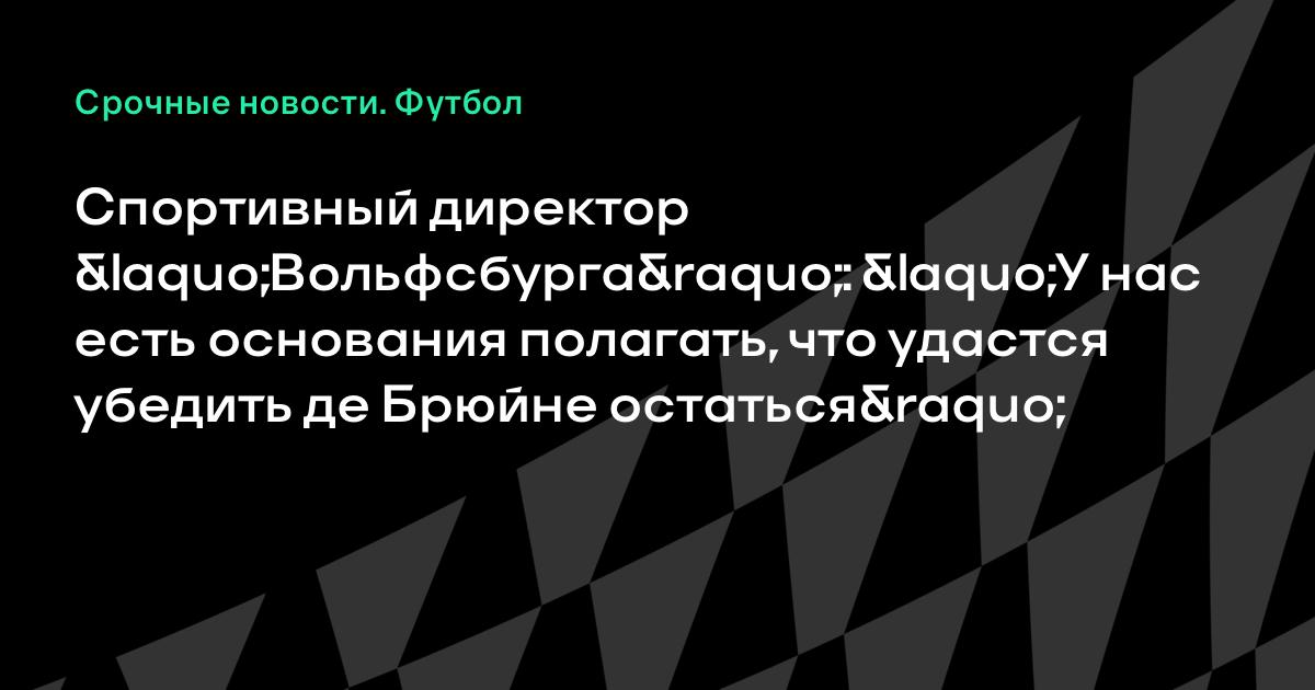 Спортивный директор «Вольфсбурга»: «У нас есть основания полагать, что удастся убедить де Брюйне остаться»