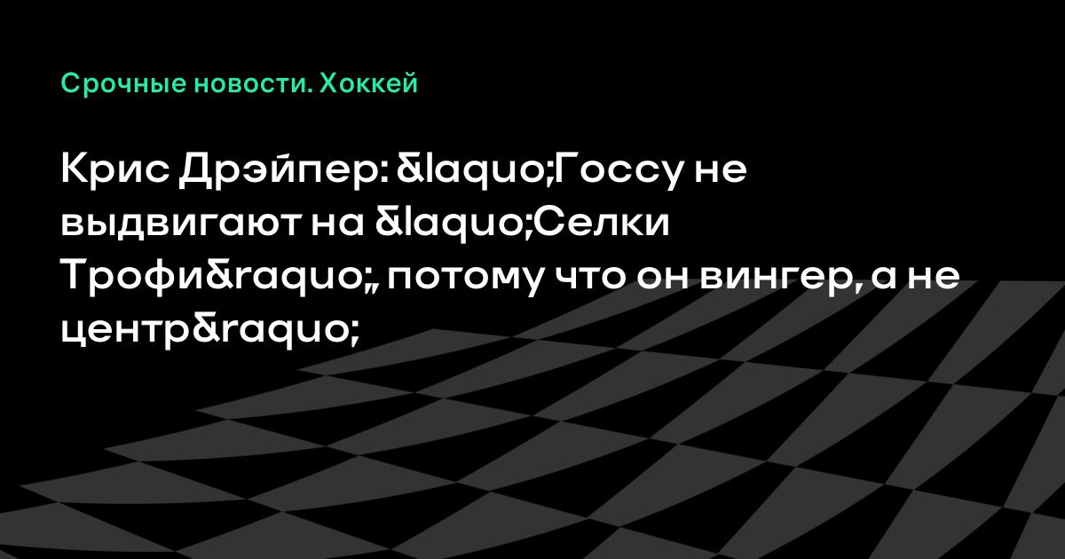 Крис Дрэйпер: «Госсу не выдвигают на «Селки Трофи», потому что он вингер, а не центр»