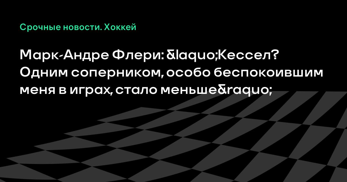 Марк-Андре Флери: «Кессел? Одним соперником, особо беспокоившим меня в играх, стало меньше»