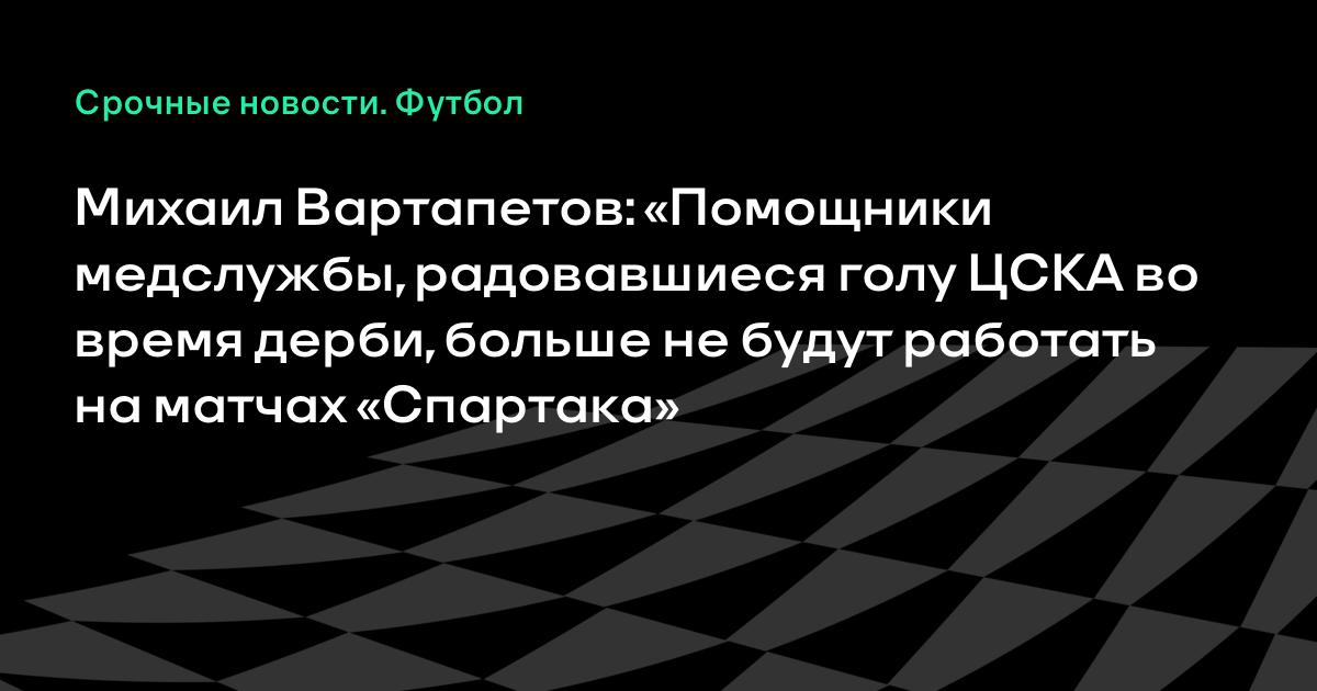 Михаил Вартапетов: «Помощники медслужбы, радовавшиеся голу ЦСКА во время дерби, больше не будут работать на матчах «Спартака»