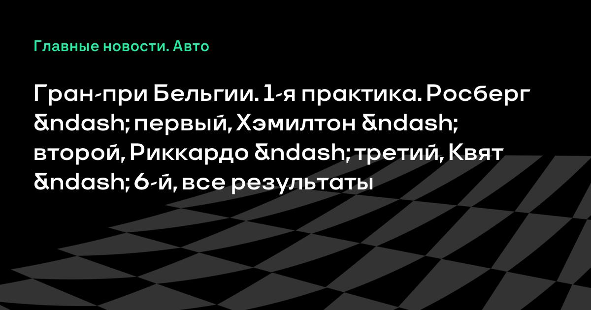 Гран-при Бельгии. 1-я практика. Росберг – первый, Хэмилтон – второй, Риккардо – третий, Квят – 6-й, все результаты