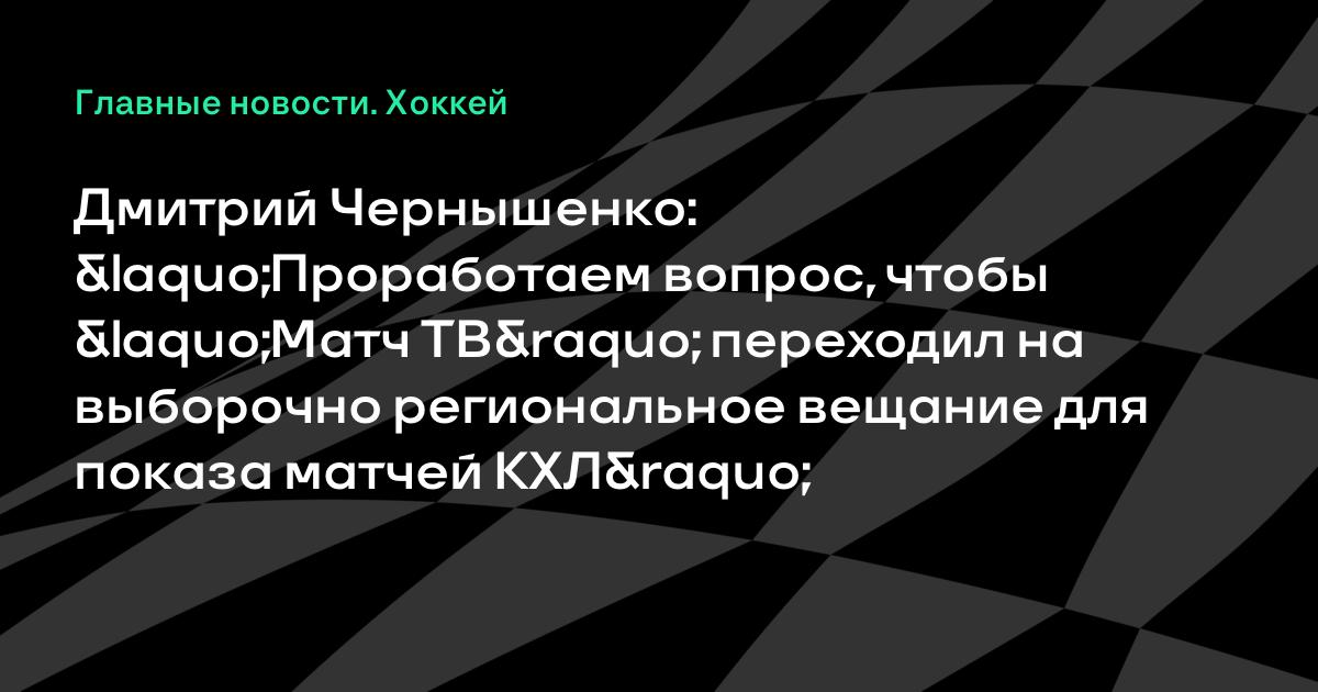 Дмитрий Чернышенко: «Проработаем вопрос, чтобы «Матч ТВ» переходил на выборочно региональное вещание для показа матчей КХЛ»