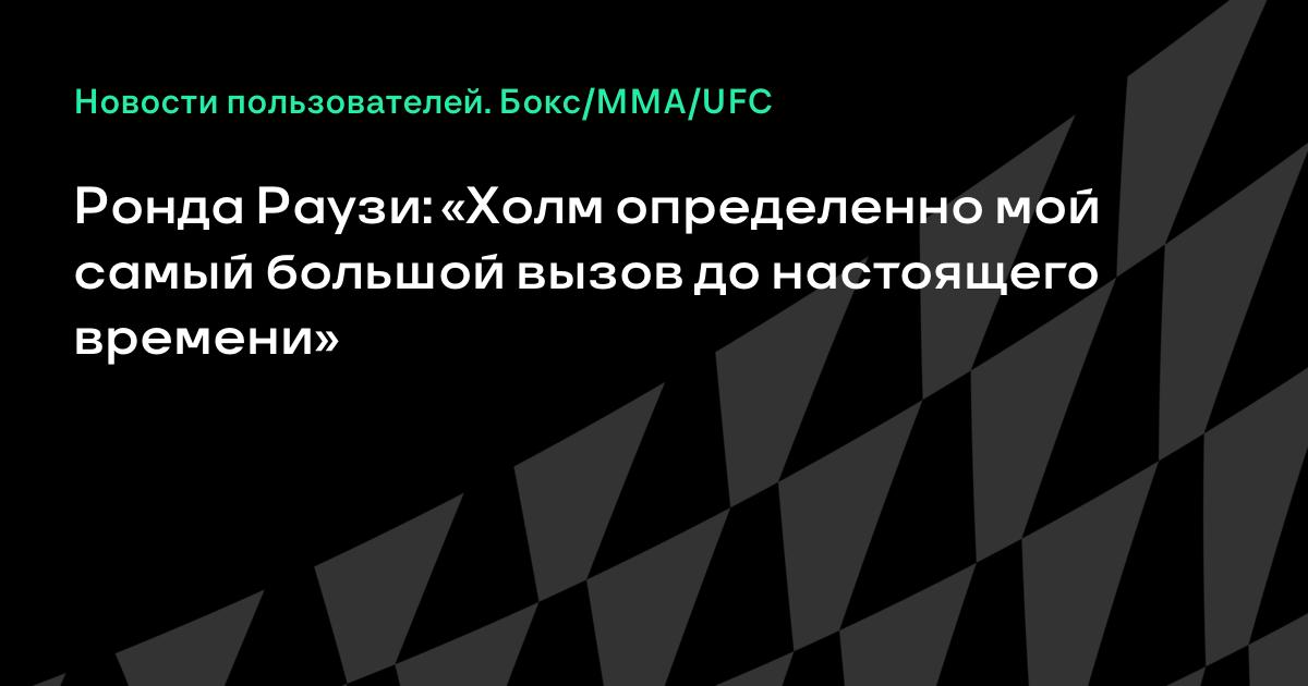 «Она определенно мой самый большой вызов до настоящего времени, поэтому я невероятно взволнована, – говорит Ронда – Я готовлюсь к пятираундовой войне каждый раз. Холли Холм тип бойца, который может пройти 12 боксерских раундов. Она не обычная средняя девчонка, с которой я дерусь. Она лучший ударник, с которым я когда-либо дралась. Ударные навыки это то, что я наиболее поздно начала изучать в своей карьере. Таким образом, я никогда не жду, что мои поединки будут легкими и быстрыми. Никто не знает точно, как будет проходить поединок, и поэтому все и покупают трансляции».