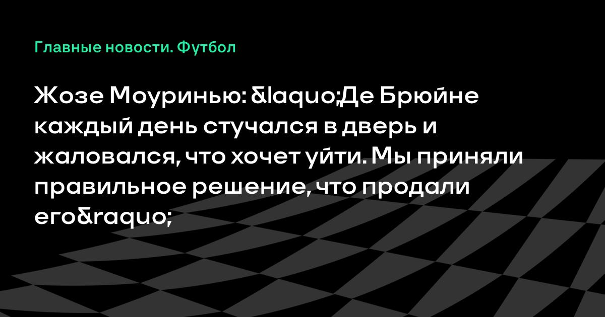 Жозе Моуринью: «Де Брюйне каждый день стучался в дверь и жаловался, что хочет уйти. Мы приняли правильное решение, что продали его»