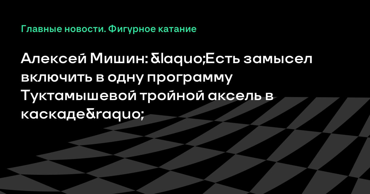 Есть замысел включить в одну из программ Туктамышевой тройной аксель в каскаде , но этот прыжок требует безупречного исполнения. Неслучайно мы так долго отрабатывали его и, лишь доведя его до совершенства, показали на соревнованиях», – сказал Мишин.
