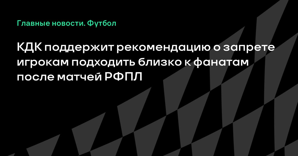 Глава КДК Артур Григорьянц сообщил о том, что Контрольно-дисциплинарный комитет Российского футбольного союза поддержит возможную рекомендацию о запрете футболистам клубов РФПЛ подходить близко к болельщикам после окончания матчей матчей.