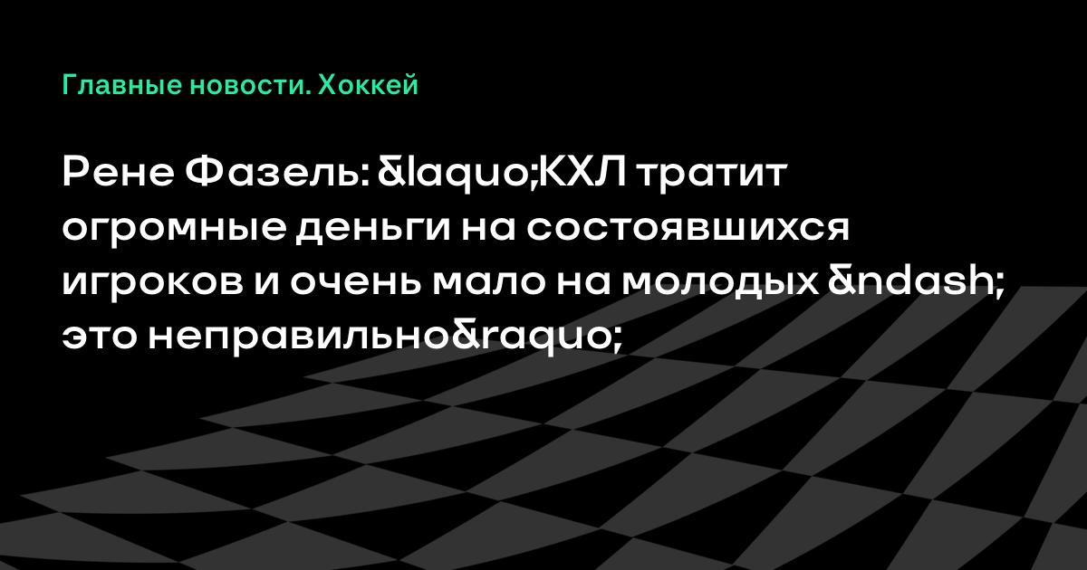 Рене Фазель: «КХЛ тратит огромные деньги на состоявшихся игроков и очень мало на молодых – это неправильно»
