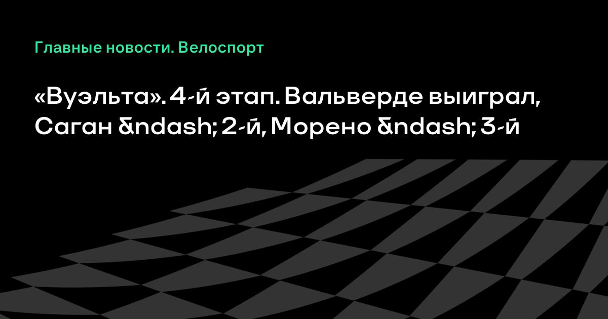 Испанский велогонщик Алехандро Вальверде сегодня выиграл 4-й этап многодневки «Вуэльта», словак Петер Саган из Tinkoff-Saxo финишировал вторым, испанец Даниэль Морено из «Катюши» – 3-й.