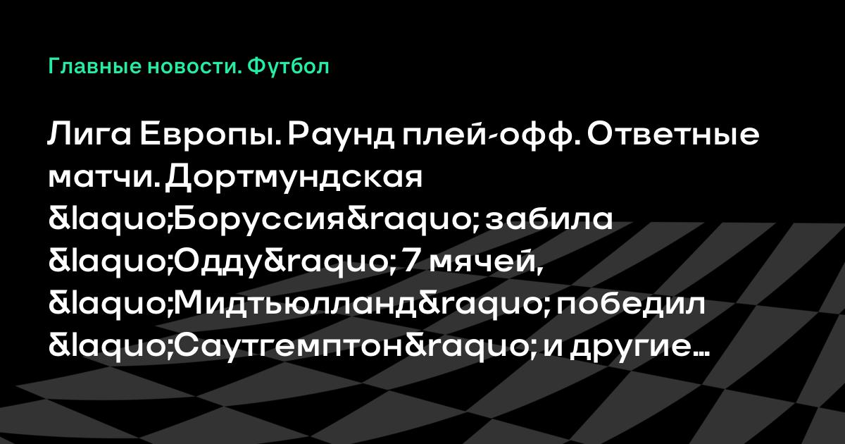 Лига Европы. Раунд плей-офф. Ответные матчи. Дортмундская «Боруссия» забила «Одду» 7 мячей, «Мидтьюлланд» победил «Саутгемптон» и другие результаты