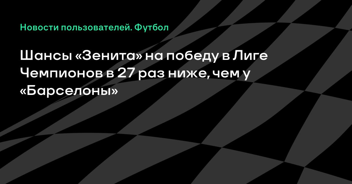 Шансы «Зенита» на победу в Лиге Чемпионов в 27 раз ниже, чем у «Барселоны»