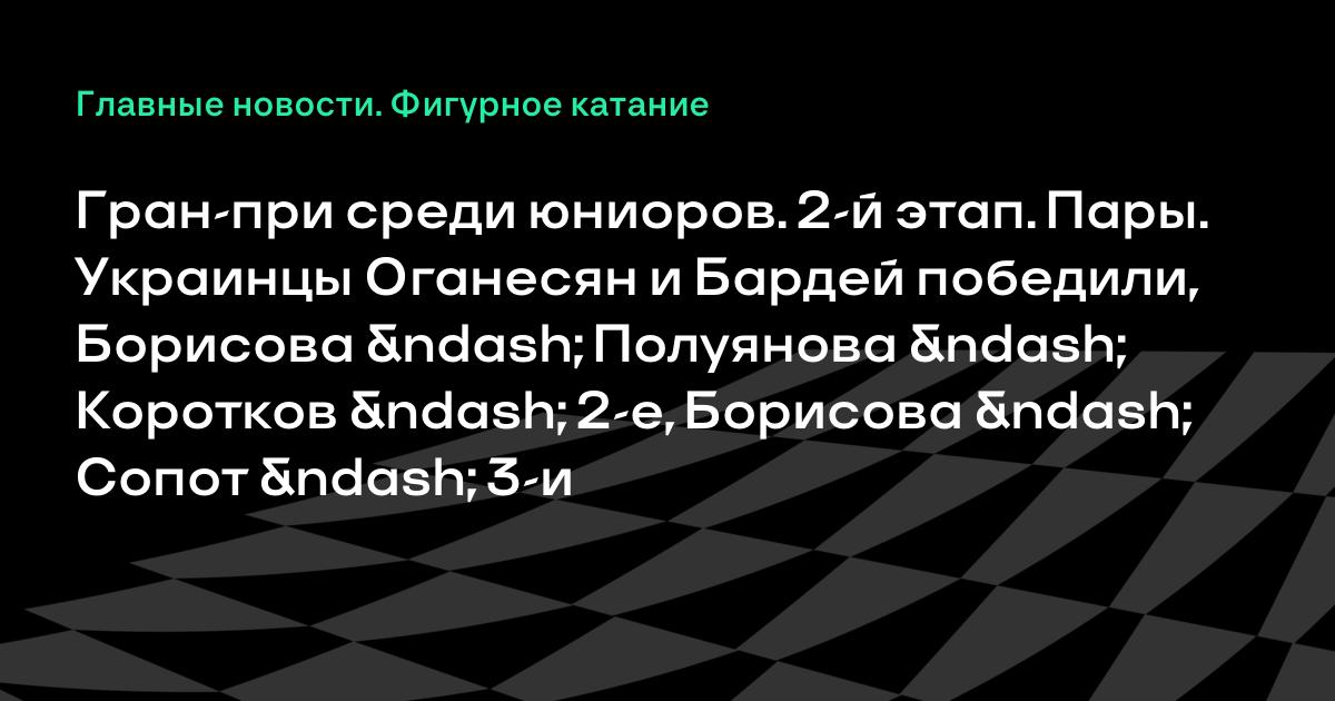 Гран-при среди юниоров. 2-й этап. Пары. Украинцы Оганесян и Бардей победили, Борисова – Полуянова – Коротков – 2-е, Борисова – Сопот – 3-и