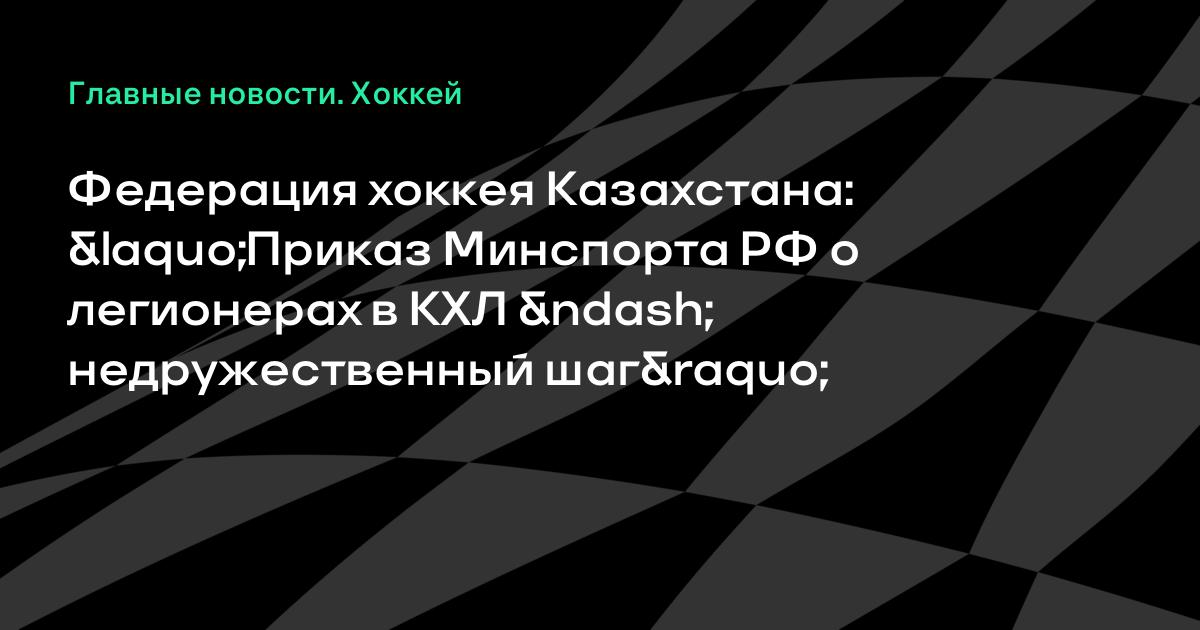 Федерация хоккея Казахстана: «Приказ Минспорта РФ о легионерах в КХЛ – недружественный шаг»