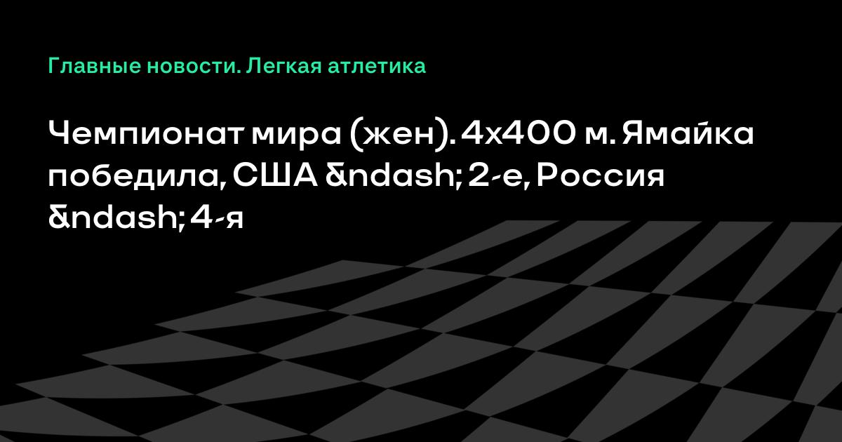 Чемпионат мира (жен). 4х400 м. Ямайка победила, США – 2-е, Россия – 4-я
