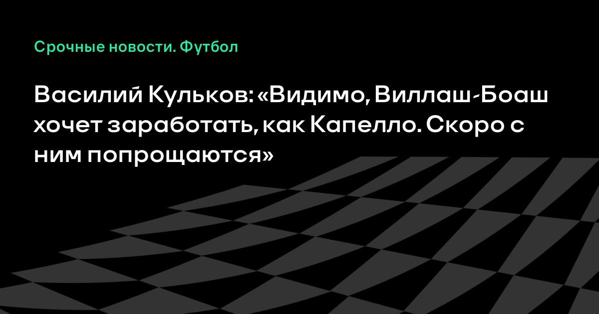 Василий Кульков: «Видимо, Виллаш-Боаш хочет заработать, как Капелло. Скоро с ним попрощаются»