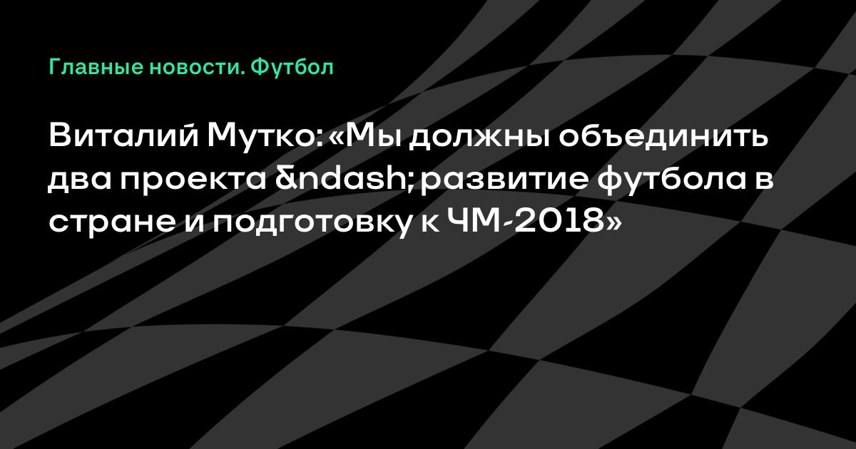 Этому должна способствовать подготовка к чемпионату мира. Мы должны сейчас объединить два проекта – развитие футбола в стране и подготовку к чемпионату мира», – сказал Мутко.