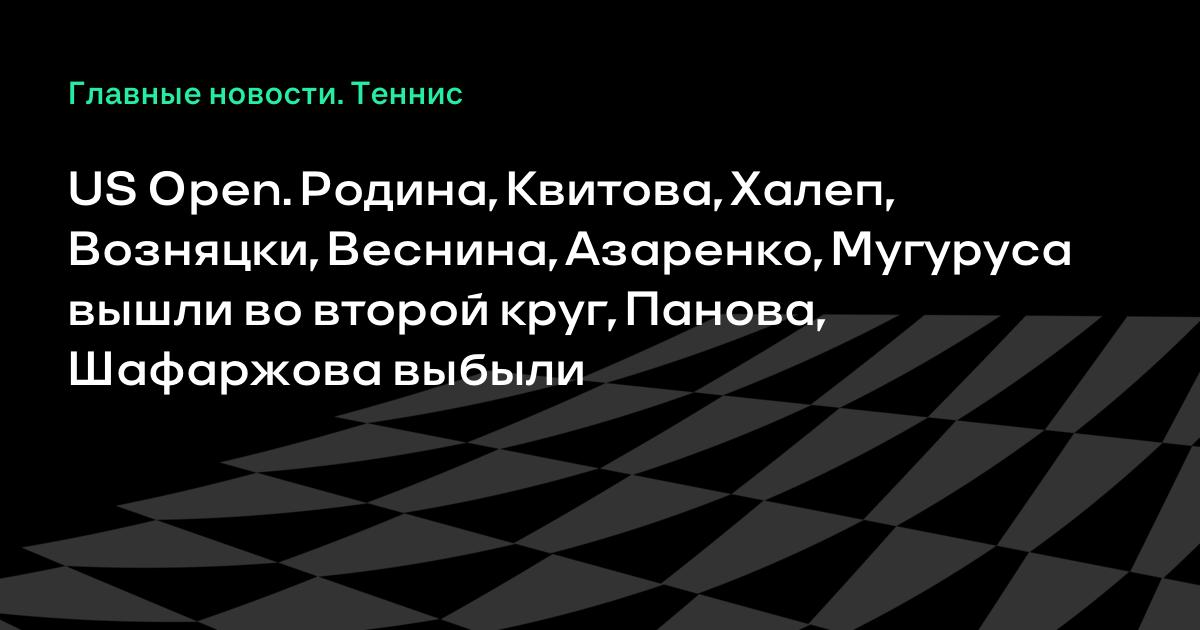 US Open. Родина, Квитова, Халеп, Возняцки, Веснина, Азаренко, Мугуруса вышли во второй круг, Панова, Шафаржова выбыли