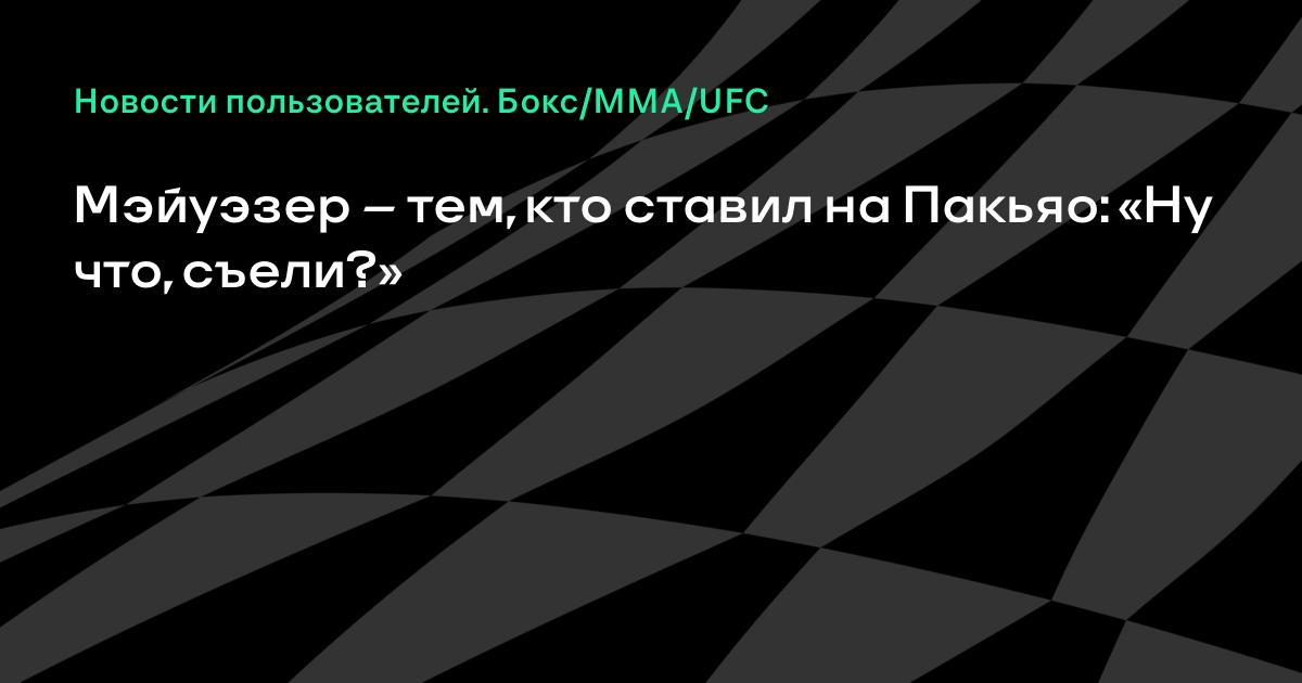 Мэйуэзер – тем, кто ставил на Пакьяо: «Ну что, съели?»
