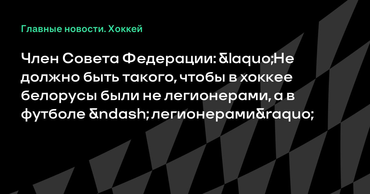 Член Совета Федерации: «Не должно быть такого, чтобы в хоккее белорусы были не легионерами, а в футболе – легионерами»