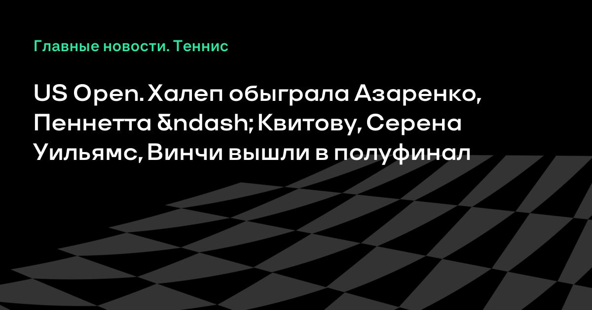 US Open. Халеп обыграла Азаренко, Пеннетта – Квитову, Серена Уильямс, Винчи вышли в полуфинал