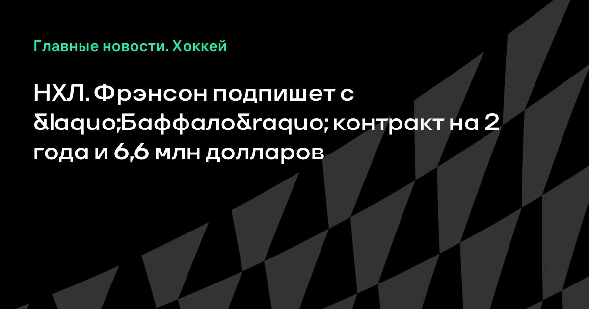 НХЛ. Фрэнсон подпишет с «Баффало» контракт на 2 года и 6,6 млн долларов