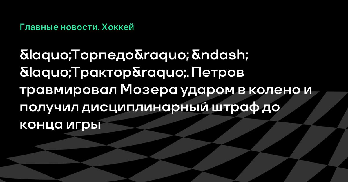 «Торпедо» – «Трактор». Петров травмировал Мозера ударом в колено и получил дисциплинарный штраф до конца игры