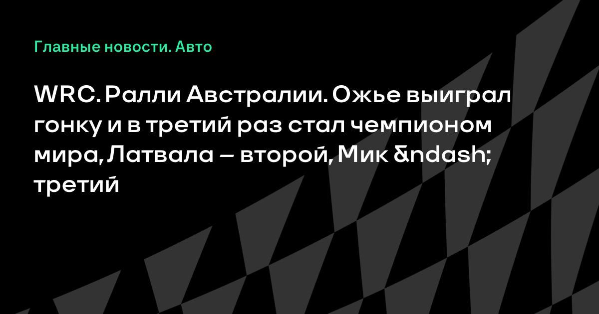 WRC. Ралли Австралии. Ожье выиграл гонку и в третий раз стал чемпионом мира, Латвала – второй, Мик – третий